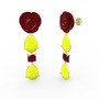 Neon sarı akrilik ve garnet 14 ayar altın küpe (Kırmızı mineli)
