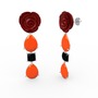 Neon turuncu akrilik ve siyah zirkon 8 ayar beyaz altın küpe (Kırmızı mineli)