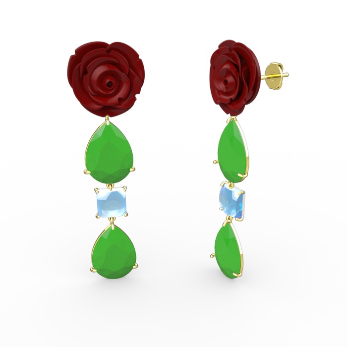 Neon yeşil akrilik ve akuamarin 925 ayar altın kaplama gümüş küpe (Kırmızı mineli)