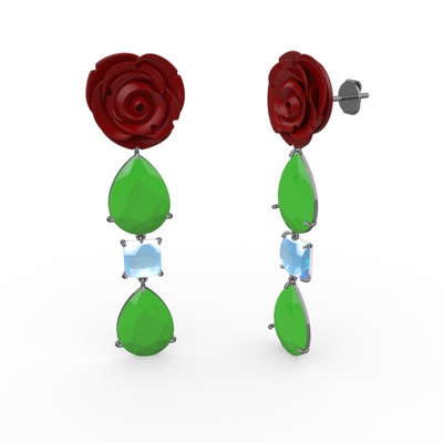 Neon yeşil akrilik ve akuamarin 925 ayar siyah rodyum kaplama gümüş küpe (Kırmızı mineli)