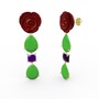 Neon yeşil akrilik ve ametist 18 ayar altın küpe (Kırmızı mineli)