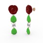 Neon yeşil akrilik ve beyaz zirkon 925 ayar rose altın kaplama gümüş küpe (Kırmızı mineli)