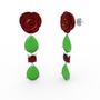 Neon yeşil akrilik ve garnet 14 ayar beyaz altın küpe (Kırmızı mineli)