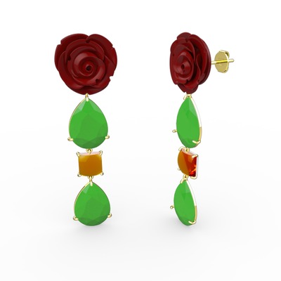 Neon yeşil akrilik ve sitrin 8 ayar altın küpe (Kırmızı mineli)