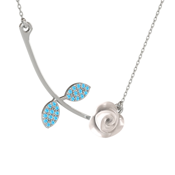 Akuamarin 18 ayar beyaz altın kolye (Beyaz mineli, 40 cm gümüş rolo zincir)
