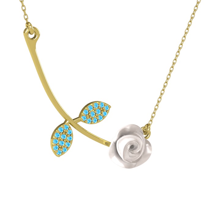 Akuamarin 8 ayar altın kolye (Beyaz mineli, 40 cm altın rolo zincir)