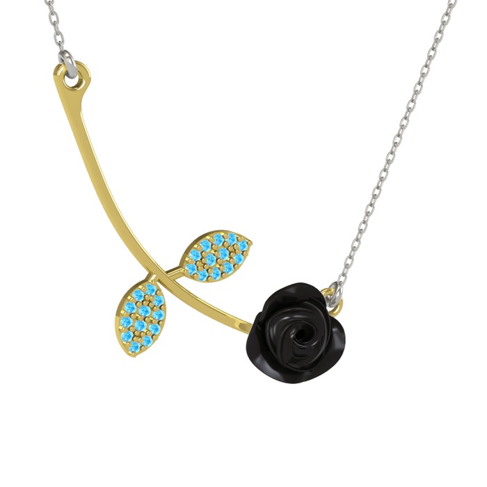 Akuamarin 8 ayar altın kolye (Siyah mineli, 40 cm beyaz altın rolo zincir)