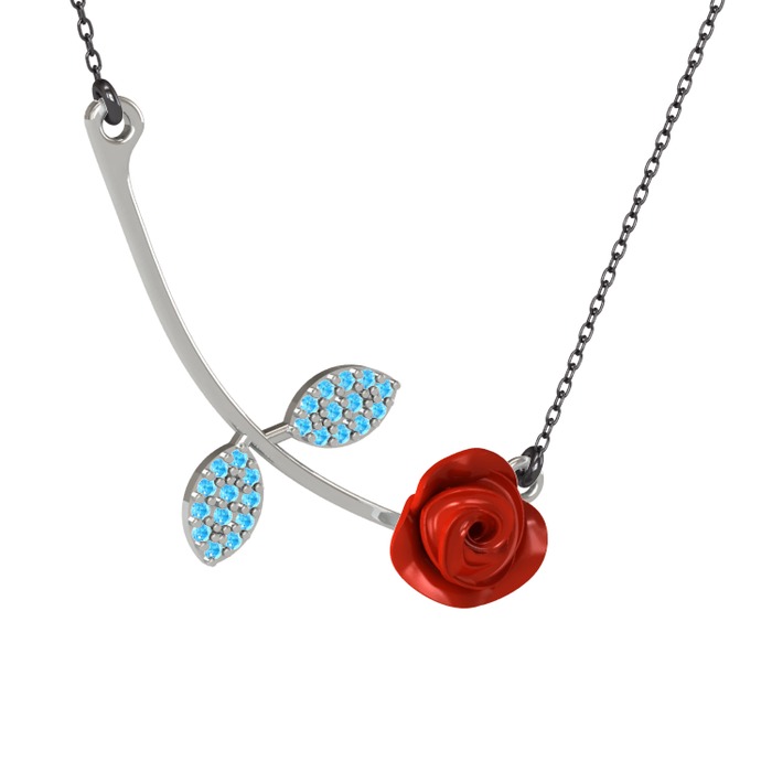 Akuamarin 925 ayar gümüş kolye (Kırmızı mineli, 40 cm gümüş rolo zincir)