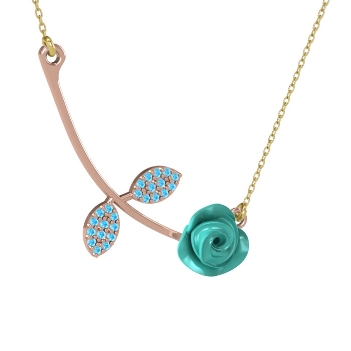 Akuamarin 925 ayar rose altın kaplama gümüş kolye (Turkuaz mineli, 40 cm altın rolo zincir)