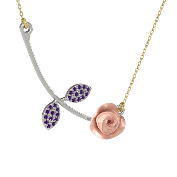 Ametist 14 ayar beyaz altın kolye (Pembe mineli, 40 cm altın rolo zincir)