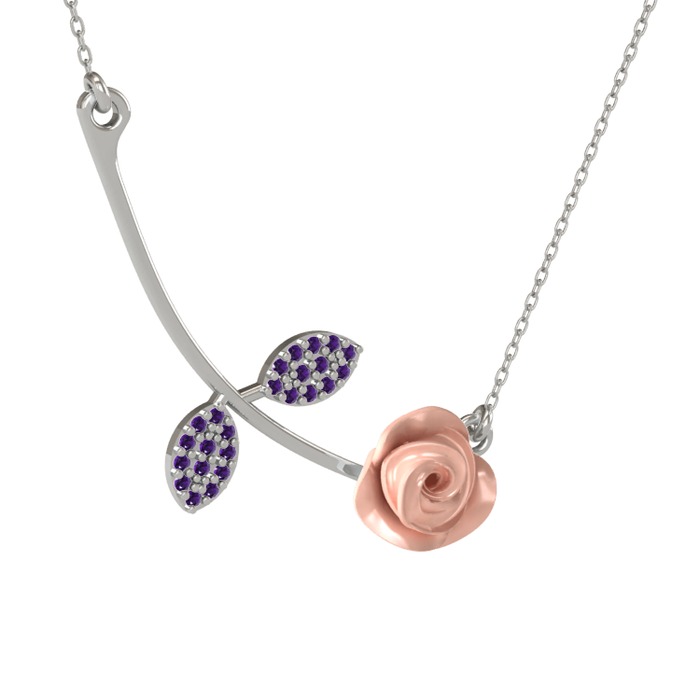 Ametist 14 ayar beyaz altın kolye (Pembe mineli, 40 cm beyaz altın rolo zincir)