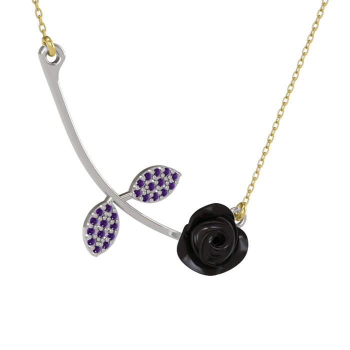 Ametist 925 ayar gümüş kolye (Siyah mineli, 40 cm gümüş rolo zincir)