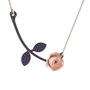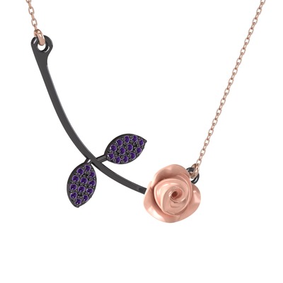 Ametist 925 ayar siyah rodyum kaplama gümüş kolye (Pembe mineli, 40 cm rose altın rolo zincir)