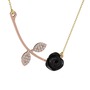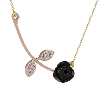 Beyaz zirkon 925 ayar rose altın kaplama gümüş kolye (Siyah mineli, 40 cm altın rolo zincir)