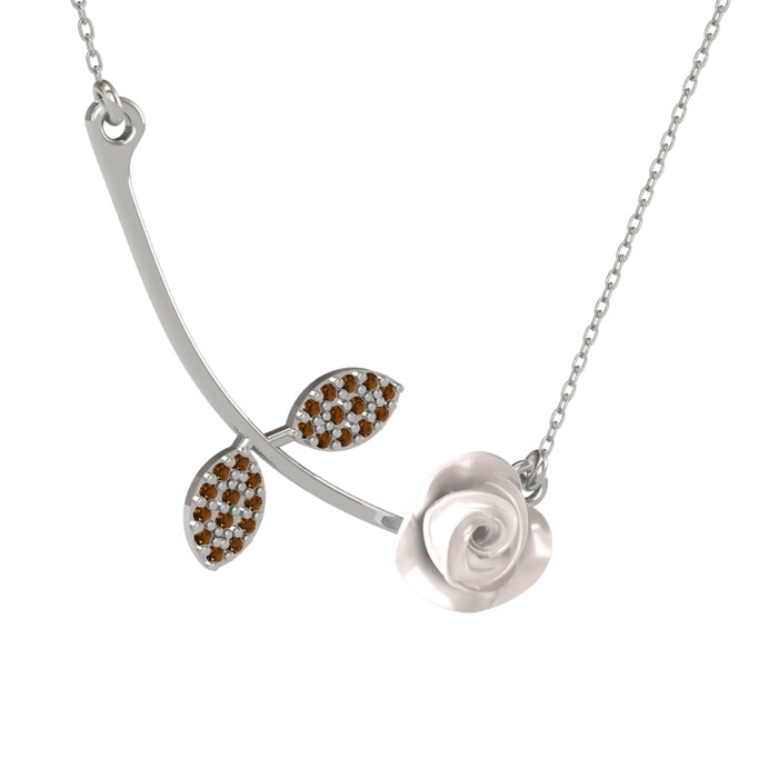 Dumanlı kuvars 8 ayar beyaz altın kolye (Beyaz mineli, 40 cm beyaz altın rolo zincir)