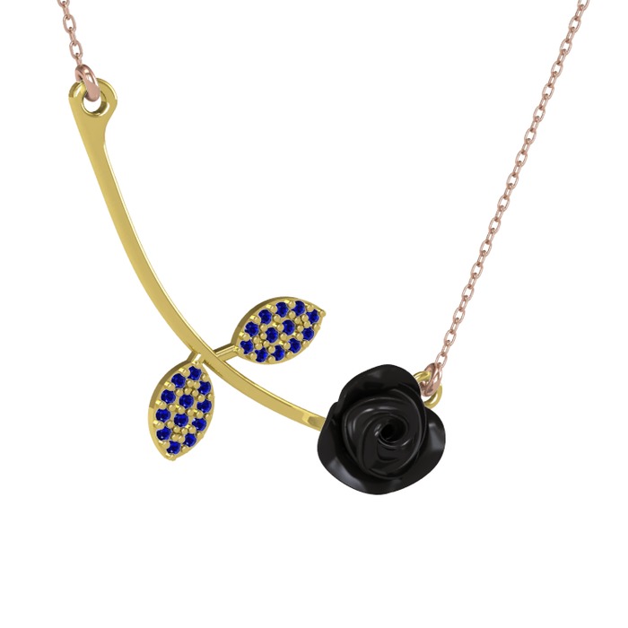 Lab safir 14 ayar altın kolye (Siyah mineli, 40 cm rose altın rolo zincir)