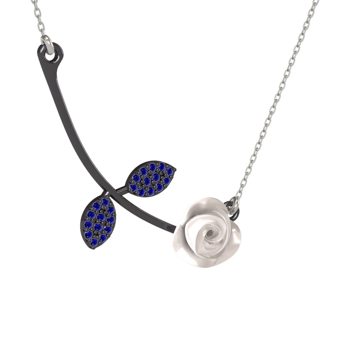 Lab safir 925 ayar siyah rodyum kaplama gümüş kolye (Beyaz mineli, 40 cm beyaz altın rolo zincir)