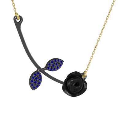 Lab safir 925 ayar siyah rodyum kaplama gümüş kolye (Siyah mineli, 40 cm gümüş rolo zincir)