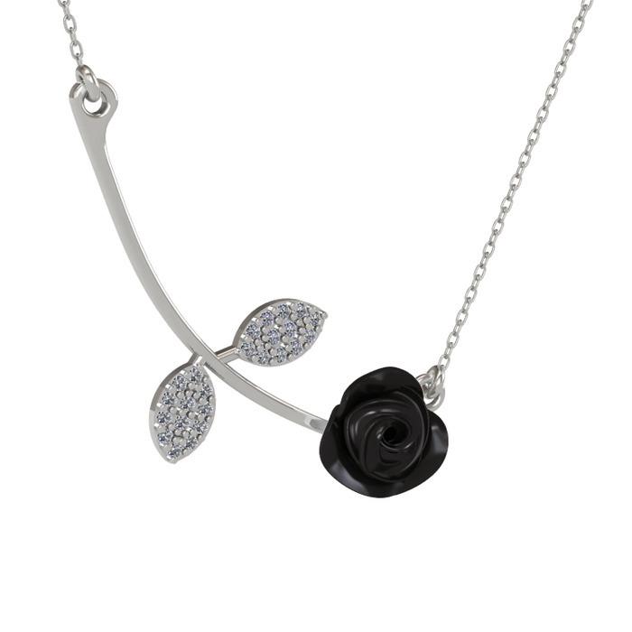 Pırlanta 14 ayar beyaz altın kolye (0.528 karat, siyah mineli, 40 cm beyaz altın rolo zincir)