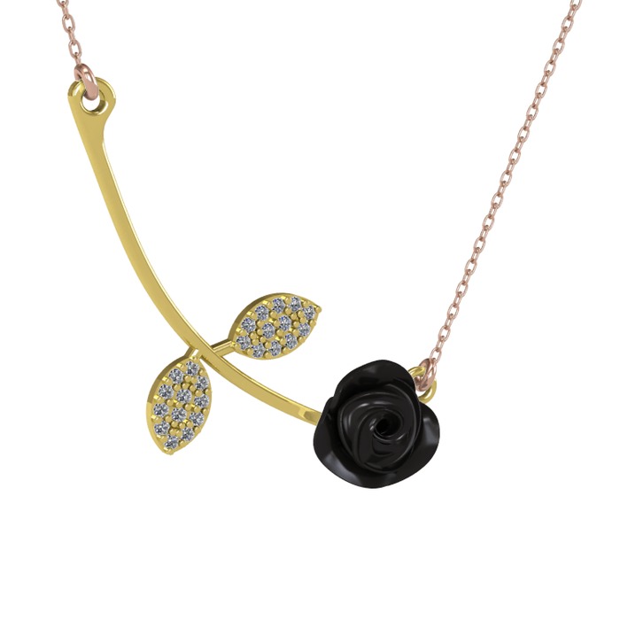 Pırlanta 18 ayar altın kolye (0.528 karat, siyah mineli, 40 cm rose altın rolo zincir)