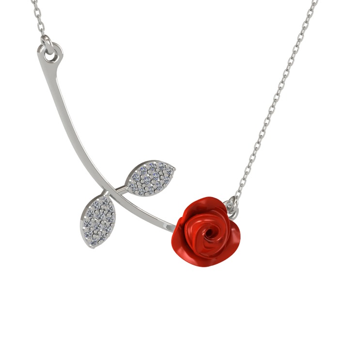 Pırlanta 8 ayar beyaz altın kolye (0.528 karat, kırmızı mineli, 40 cm beyaz altın rolo zincir)