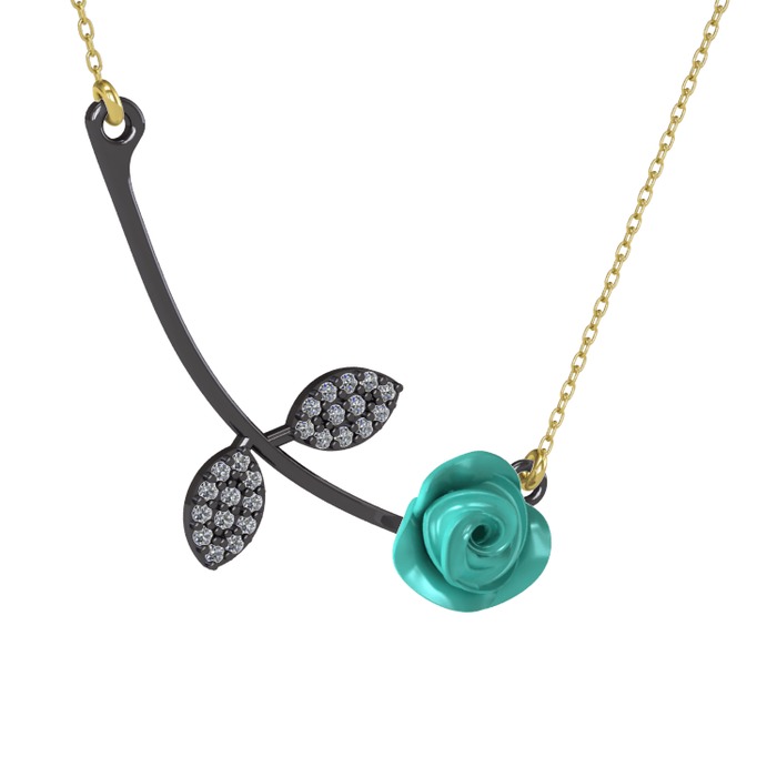 Pırlanta 925 ayar siyah rodyum kaplama gümüş kolye (0.528 karat, turkuaz mineli, 40 cm altın rolo zincir)