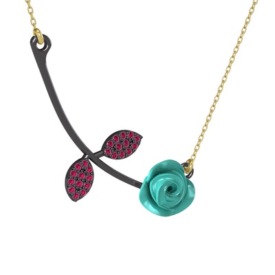 Rodolit garnet 925 ayar siyah rodyum kaplama gümüş kolye (Turkuaz mineli, 40 cm altın rolo zincir)