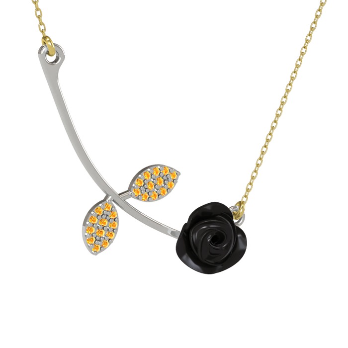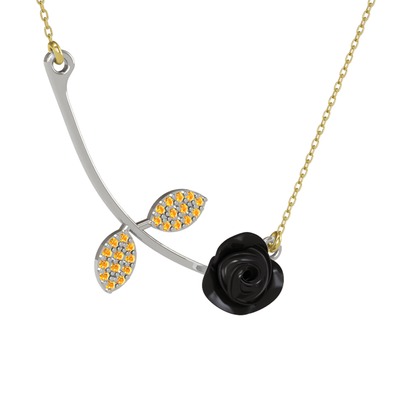 Sitrin 925 ayar gümüş kolye (Siyah mineli, 40 cm altın rolo zincir)