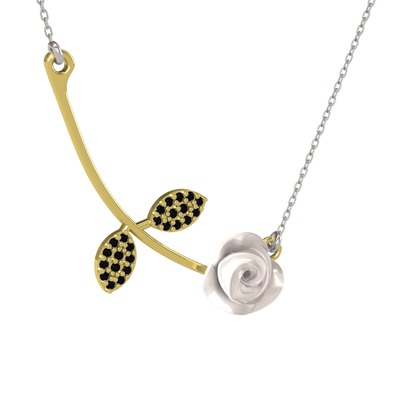 Siyah zirkon 14 ayar altın kolye (Beyaz mineli, 40 cm beyaz altın rolo zincir)