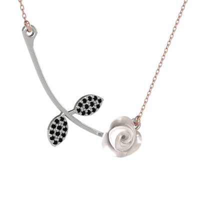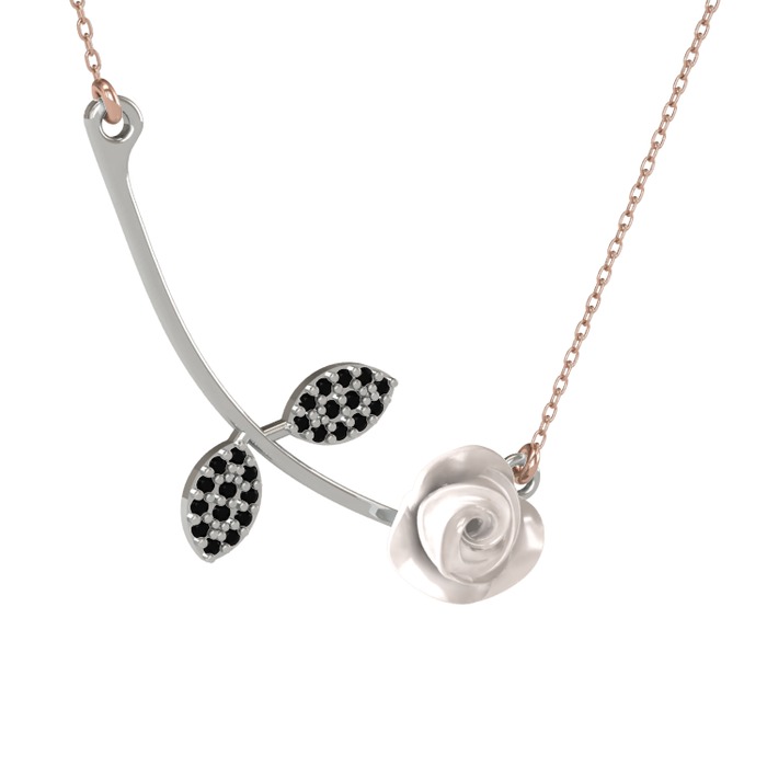Siyah zirkon 8 ayar beyaz altın kolye (Beyaz mineli, 40 cm rose altın rolo zincir)