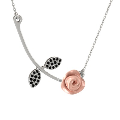 Siyah zirkon 925 ayar gümüş kolye (Pembe mineli, 40 cm beyaz altın rolo zincir)