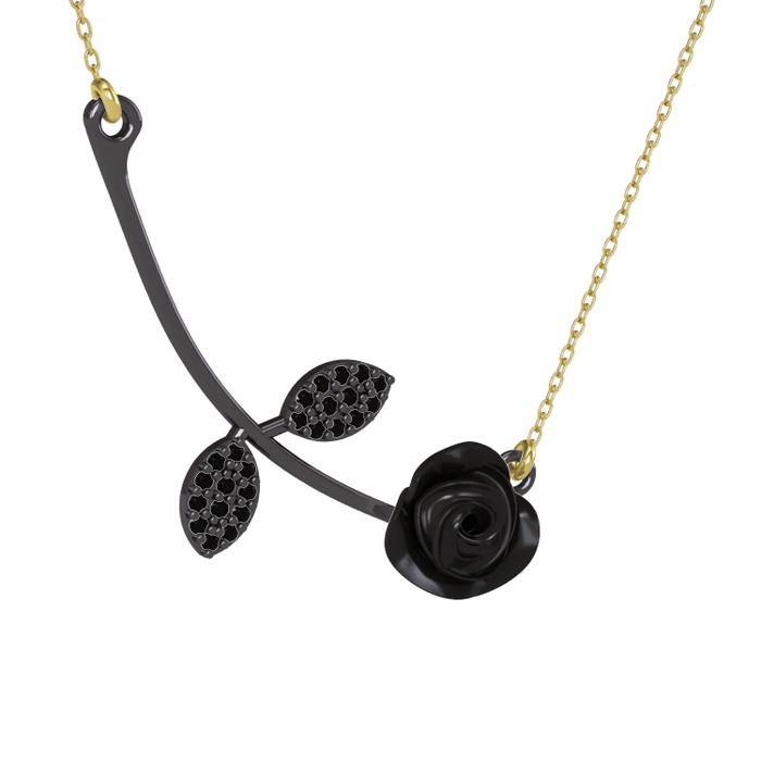 Siyah zirkon 925 ayar siyah rodyum kaplama gümüş kolye (Siyah mineli, 40 cm gümüş rolo zincir)