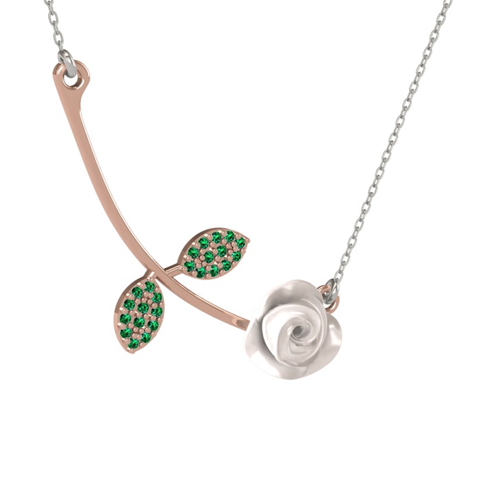 Yeşil kuvars 18 ayar rose altın kolye (Beyaz mineli, 40 cm beyaz altın rolo zincir)
