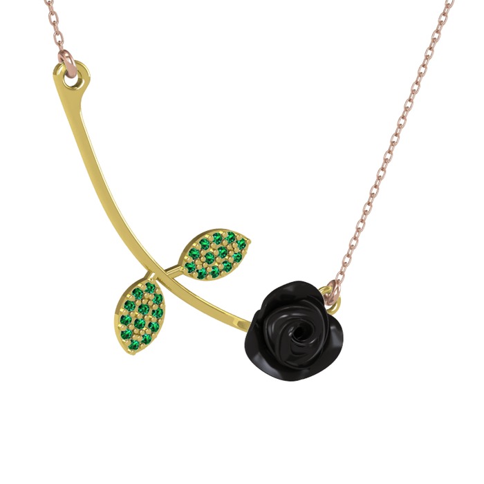 Yeşil kuvars 8 ayar altın kolye (Siyah mineli, 40 cm gümüş rolo zincir)