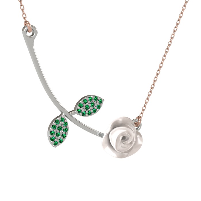 Yeşil kuvars 8 ayar beyaz altın kolye (Beyaz mineli, 40 cm gümüş rolo zincir)