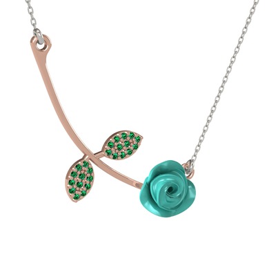 Yeşil kuvars 8 ayar rose altın kolye (Turkuaz mineli, 40 cm beyaz altın rolo zincir)