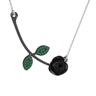 Yeşil kuvars 925 ayar siyah rodyum kaplama gümüş kolye (Siyah mineli, 40 cm beyaz altın rolo zincir)