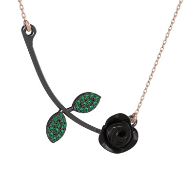 Yeşil kuvars 925 ayar siyah rodyum kaplama gümüş kolye (Siyah mineli, 40 cm gümüş rolo zincir)