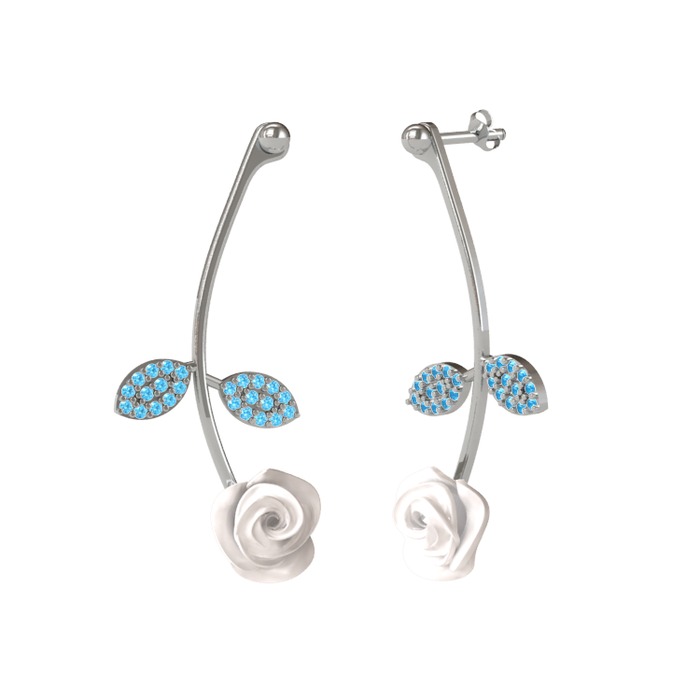 Akuamarin 18 ayar beyaz altın küpe (Beyaz mineli)