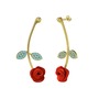 Akuamarin 8 ayar altın küpe (Kırmızı mineli)