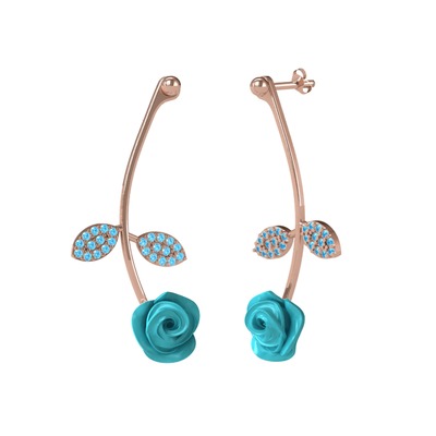 Akuamarin 925 ayar rose altın kaplama gümüş küpe (Turkuaz mineli)