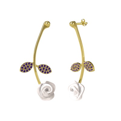 Ametist 14 ayar altın küpe (Beyaz mineli)