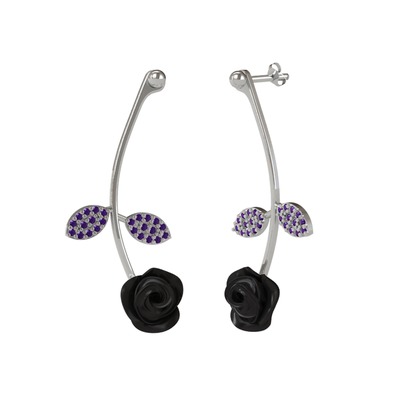Ametist 14 ayar beyaz altın küpe (Siyah mineli)