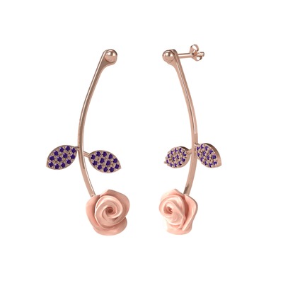 Ametist 14 ayar rose altın küpe (Pembe mineli)