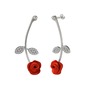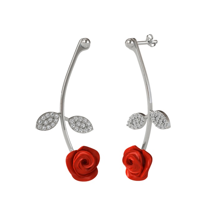 Beyaz zirkon 18 ayar beyaz altın küpe (Kırmızı mineli)