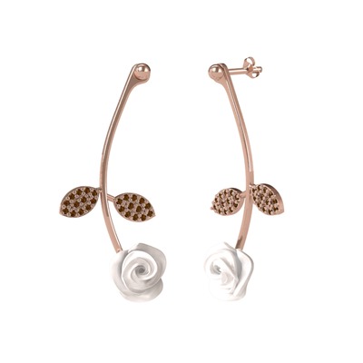 Dumanlı kuvars 925 ayar rose altın kaplama gümüş küpe (Beyaz mineli)