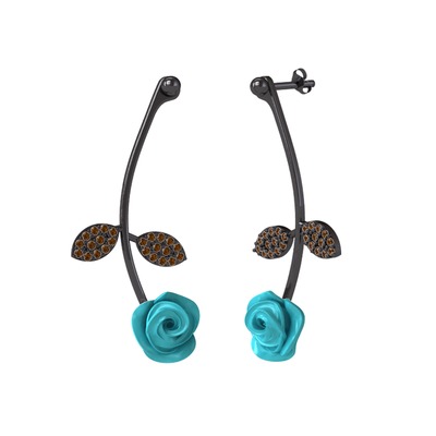 Dumanlı kuvars 925 ayar siyah rodyum kaplama gümüş küpe (Turkuaz mineli)
