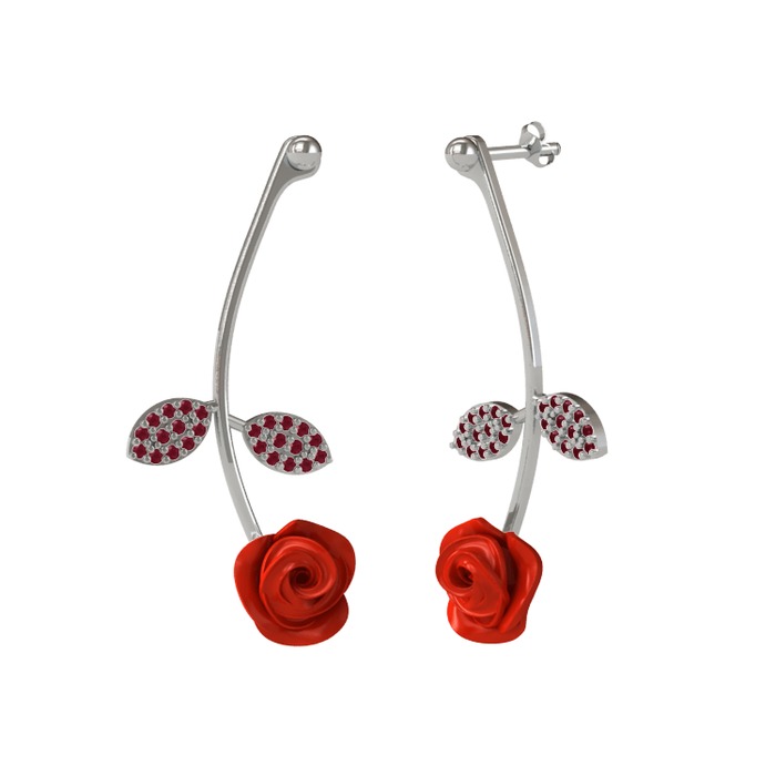 Kök yakut 14 ayar beyaz altın küpe (Kırmızı mineli)