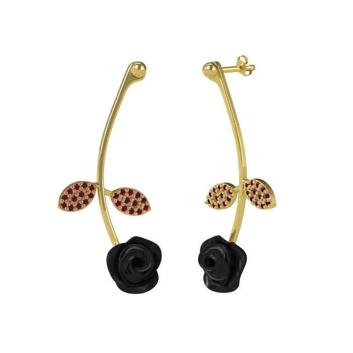 Kök yakut 925 ayar altın kaplama gümüş küpe (Siyah mineli)