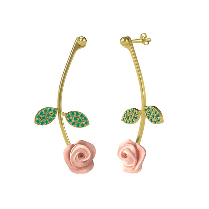 Kök zümrüt 8 ayar altın küpe (Pembe mineli)